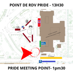 Point de rencontre : 13h30, Place de l’Université, dans le parc entre le Village Associatif et la rue de l’Université (voir le plan ci-dessous).
